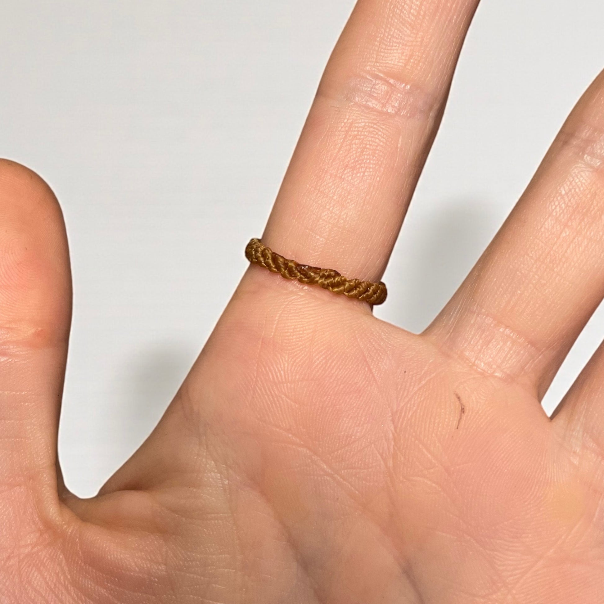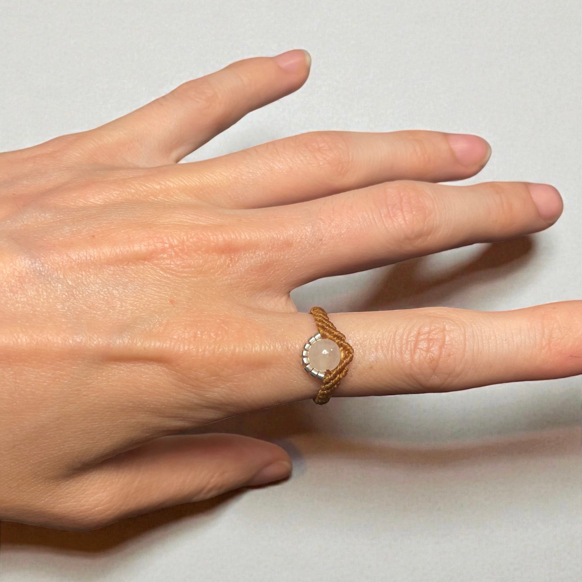 Cette bague délicate est entièrement tissée à la main en micromacramé. Chaque pièce met en valeur une perle en pierre naturelle et se compose de fins entrelacements de fils pour un rendu élégant et discret.