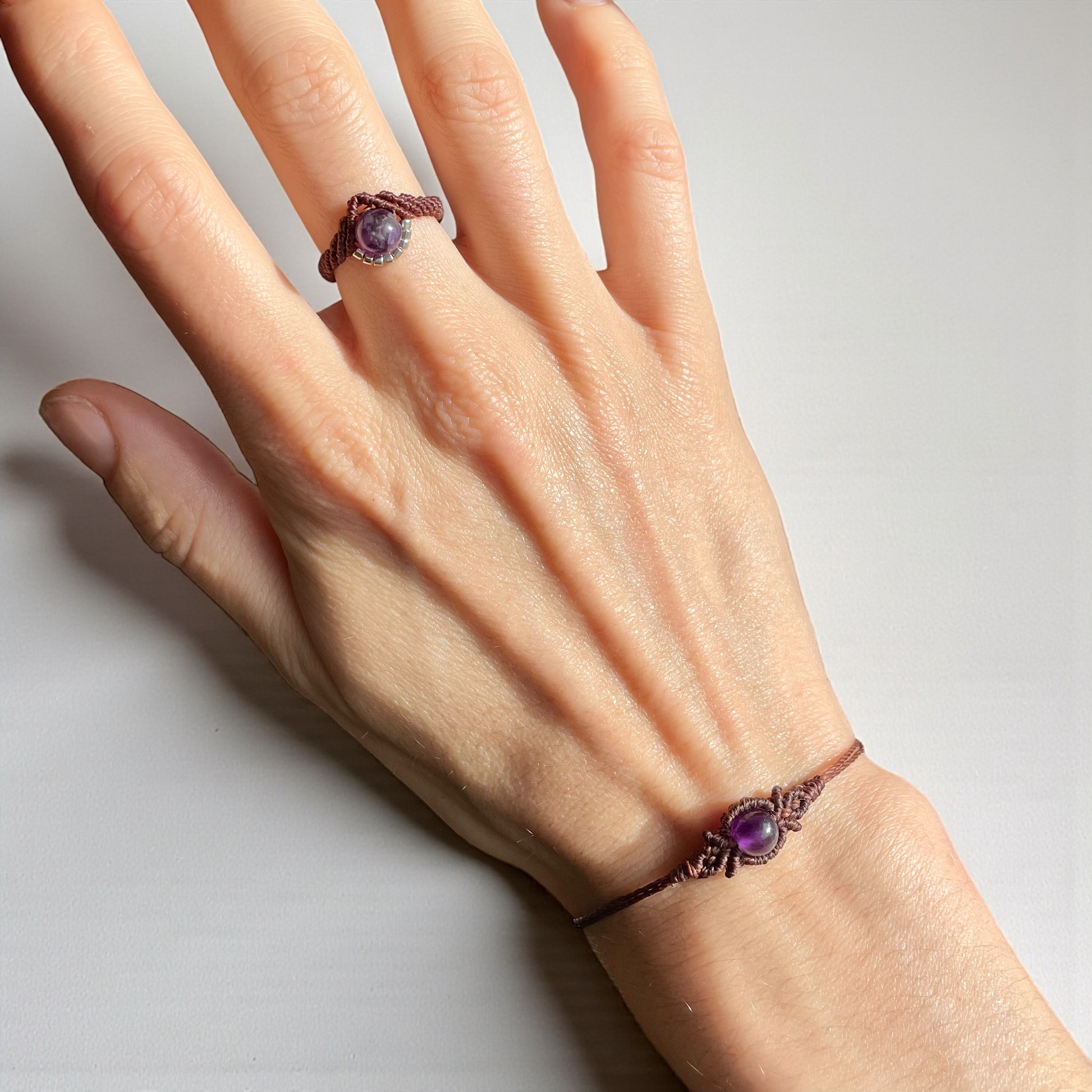 • Acajou / Améthyste / Argenté en association avec le bracelet Mira.