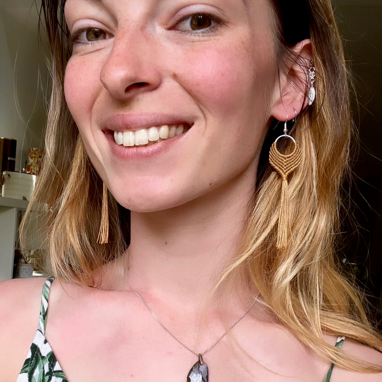 Découvre le modèle "Encelade", ces jolies boucles d'oreilles au charme bohème. Disponibles en plusieurs couleurs, elles sauront ajouter une touche d'originalité à ton style.