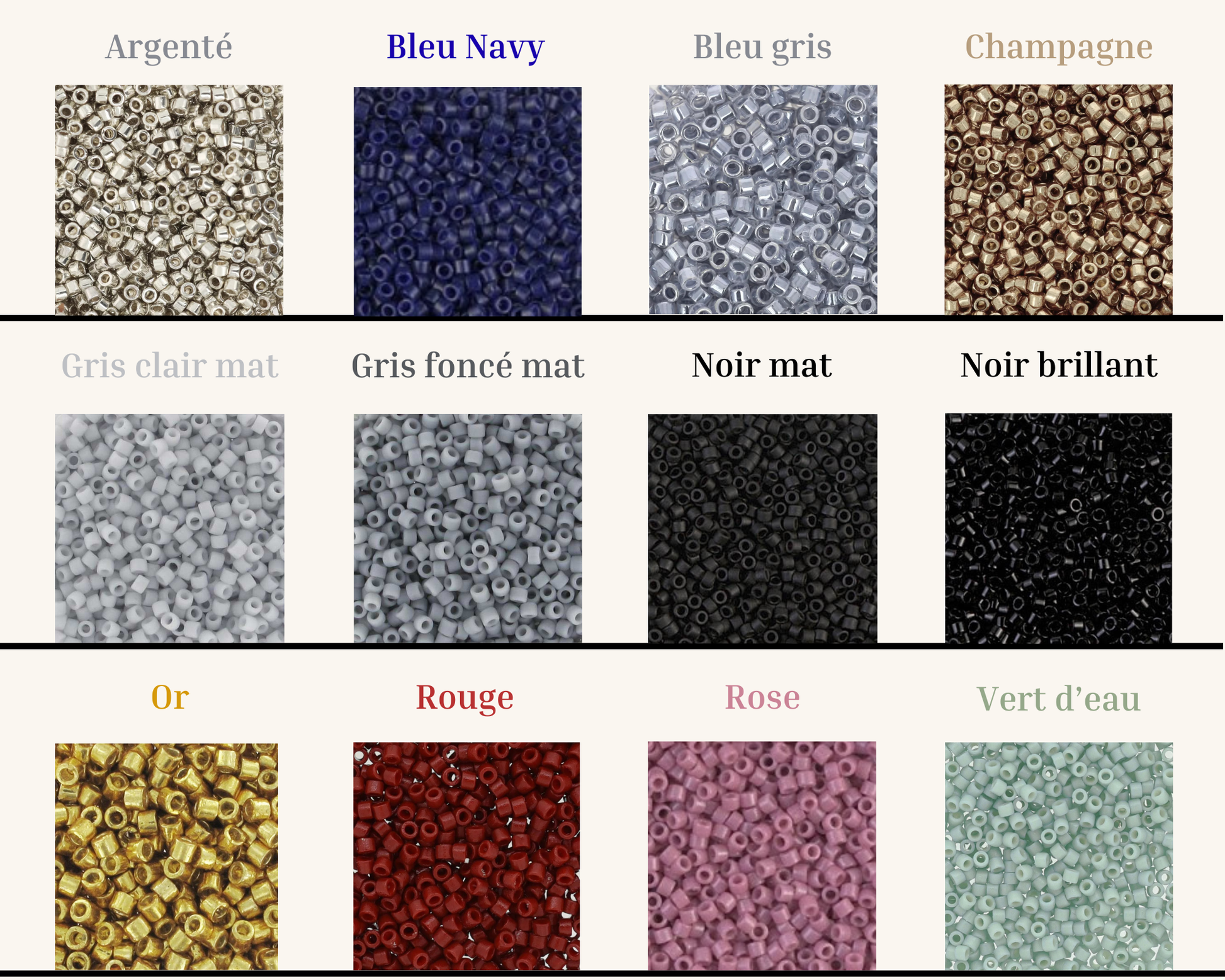 Tu as du mal à choisir ta perle et ta couleur de fil ? Tu peux facilement choisir grâce à mon guide d'associations des couleurs et des perles, accessible en cliquant ici.